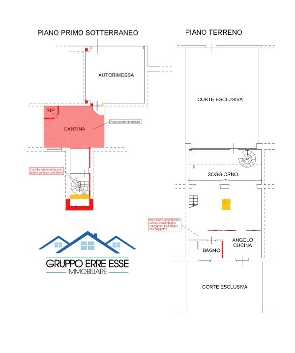 - al piano interrato sono presenti un locale cantina, un ripostiglio ed un vano scala di collegamento al piano terra;